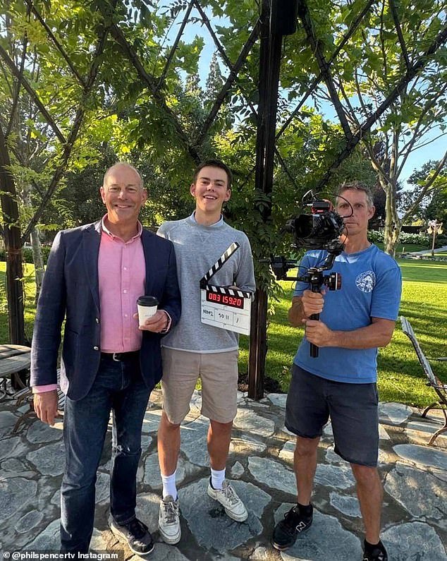 Phil tenía todas las sonrisas de pie junto a su hijo adolescente y camarógrafo.