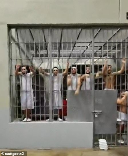 En el primer video de la famosa prisión de Sikot de El Salvador en el primer video del nuevo tren d argumento, los inmigrantes de Aceed siguieron sus celdas siguiendo su exilio