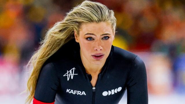 El patinador de velocidad holandés Leerdam se cayó en los 1.000 metros en la clasificación la semana pasada.
