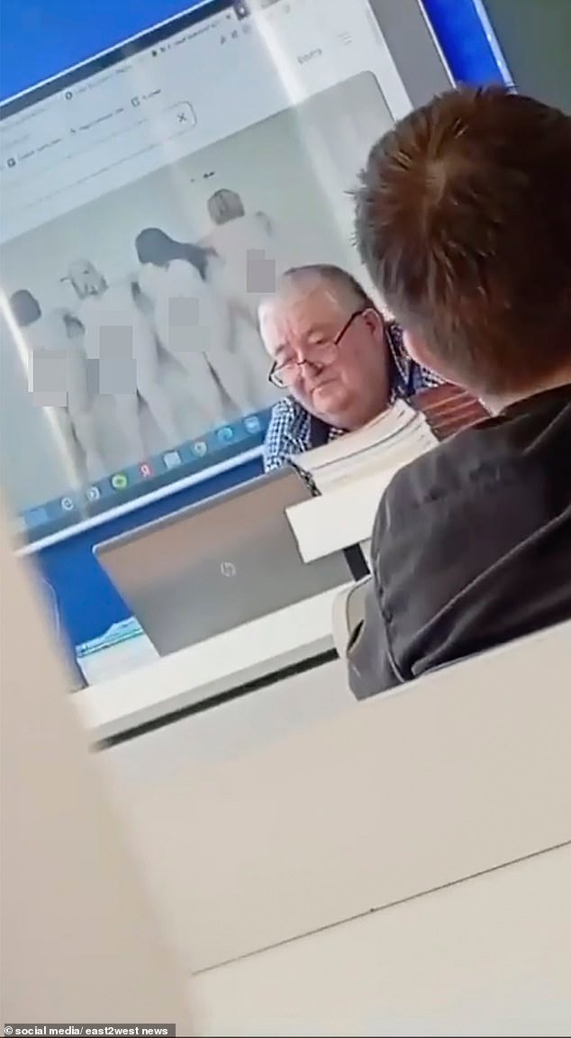Las imágenes ansiosas mostraron que el maestro Rajif Nurgaliev (62), Memorandum en su escena calificada por la pantalla X, tal vez no estaban al tanto de que también estaban presentes en el monitor del aula con plena vista.