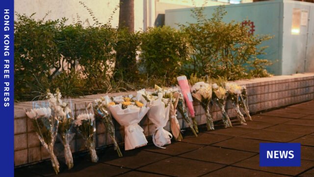 Se ve un festival de flores blancas cerca de Wang Fook Court en Tai Po, Hong Kong, el 28 de noviembre de 2025, tras el incendio más mortífero de Hong Kong en décadas que mató al menos a 128 personas. Foto: Kyle Lam/HKFP.