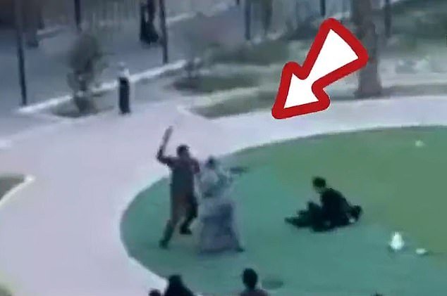 Se ve a una mujer tratando de escapar antes de ser arrojada al suelo y golpear