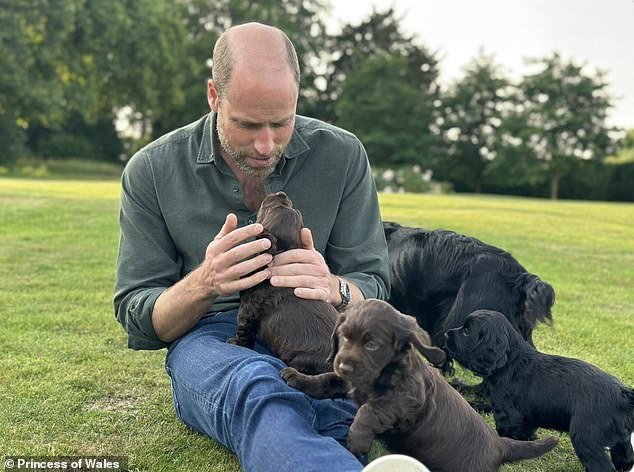 El príncipe William fue interpretado en una foto tomada por su perro Ourala y su tres cachorro con su esposa Kate y el sábado Kennington Palace fue liberado para su 43 cumpleaños.