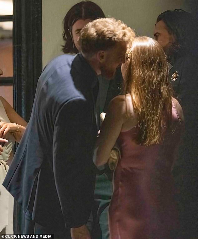 Fue vista charlando con otra mujer con un vestido negro, antes de asegurar a otra mujer con un vestido sedoso sin espalda.