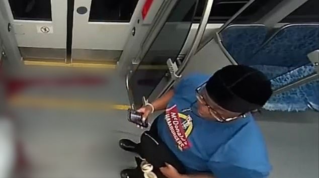 Un tipo desconocido vestido con la camiseta de Neil McDonald’s, Durag y Chashma tiraron de su teléfono grabando a Iriana Jarutska cuando subió al tren en Charlota de Carolina del Norte