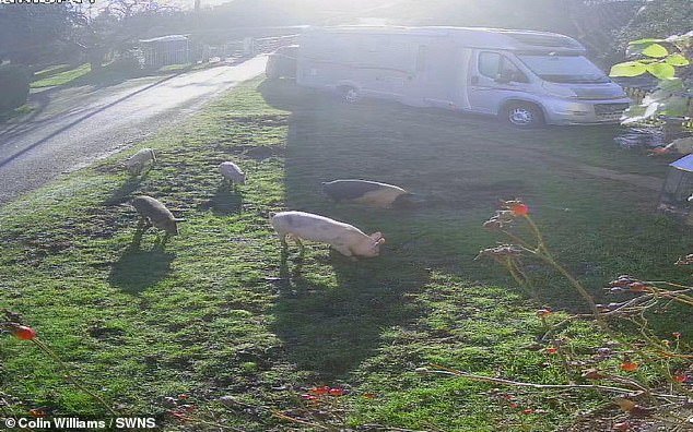 El Sr. Williams estableció un sistema de CCTV para identificar la filosofía de los cerdos y dijo que su césped gastaría más de $ 1000 para reparar el daño.