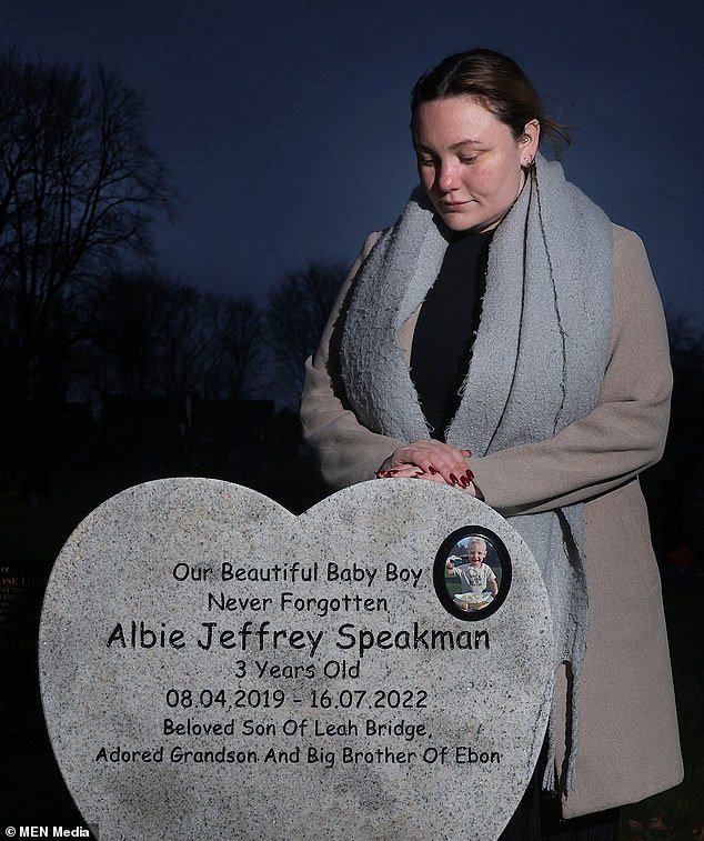 Mother Mother Lea Bridge, de 31 años, se encuentra junto a su tumba de tres hijos de tres años