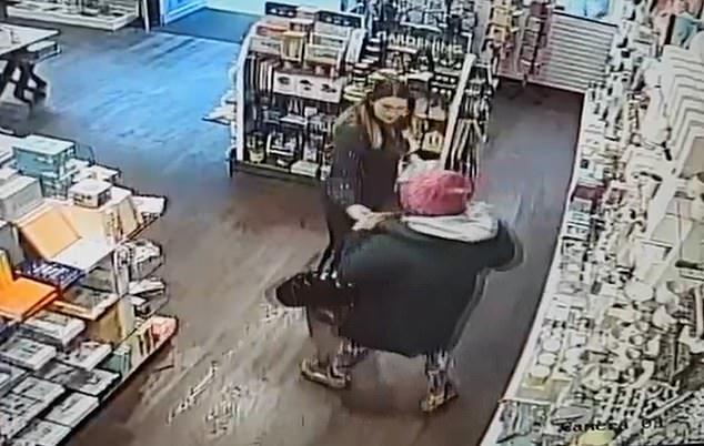 Ilustrado: Las imágenes se muestran a una mujer que roba un elemento de belleza y luego la tienda escapa después de que el miembro del personal enfrenta al miembro