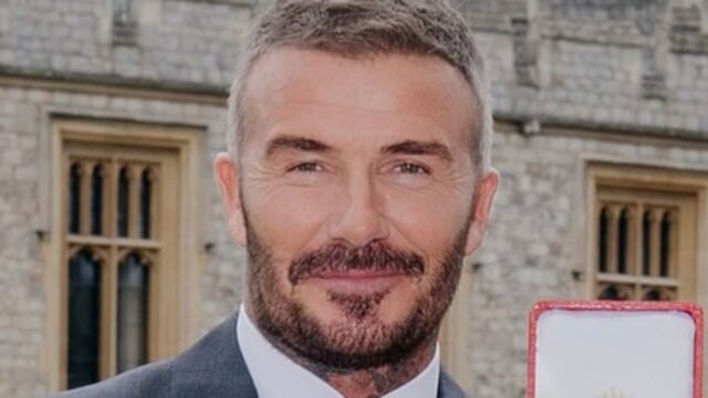 ¡Levanta como (Señor) Beckham! David añadió un poco de altura a su look con zapatos de “tacón” cuando el rey Carlos lo nombró caballero en el Castillo de Windsor el martes.