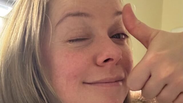Liz McClernon dio la bienvenida a su primer hijo con su esposo Peter Cho después de años de ‘dolorosa FIV’, y compartió una selfie con el pulgar hacia arriba desde el hospital el domingo.