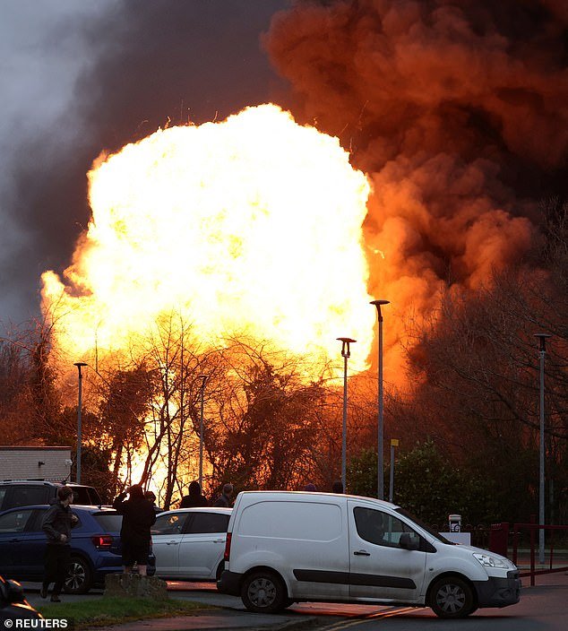 Fuertes llamas naranjas en las imágenes impactantes mostraron la explosión desde el suelo hacia arriba desde el suelo