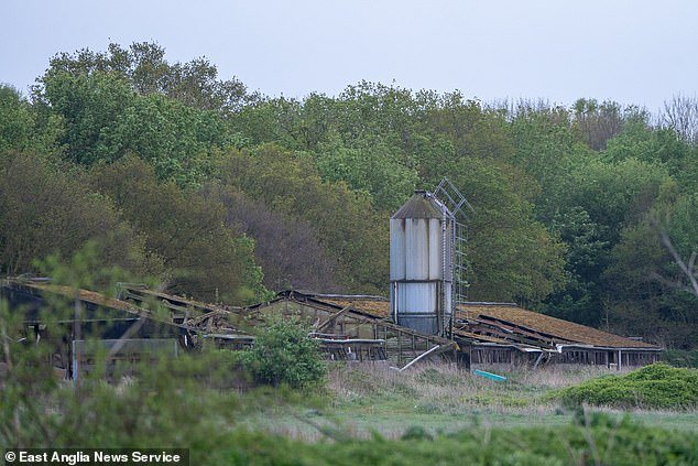 Una escena de viejos cobertizos de pollo que será destruido para crear una forma de 20 enormes cobertizos en el Methwold de Norfolk