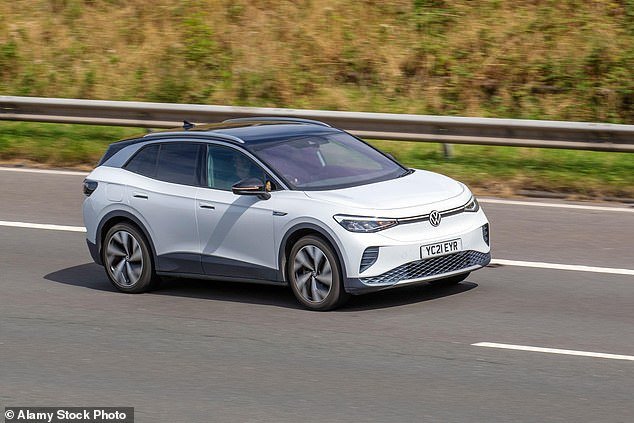 Un VW eléctrico en viajero en la autopista M6. La Asociación de Fabricantes de restricciones de vehículos (VRMA) dice que la barrera de accidente existente no puede detener los vehículos eléctricos pesados