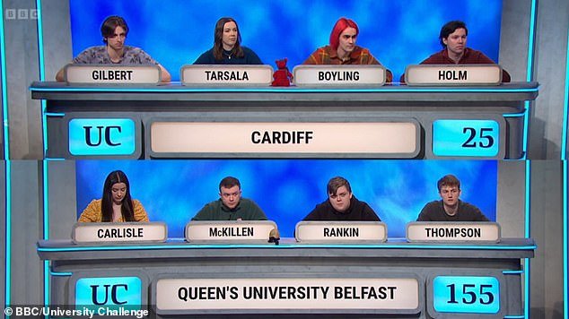 Al final de la ronda, la Universidad de Queens Belfast ganó con 180 puntos, y Cardiff anotó 70.