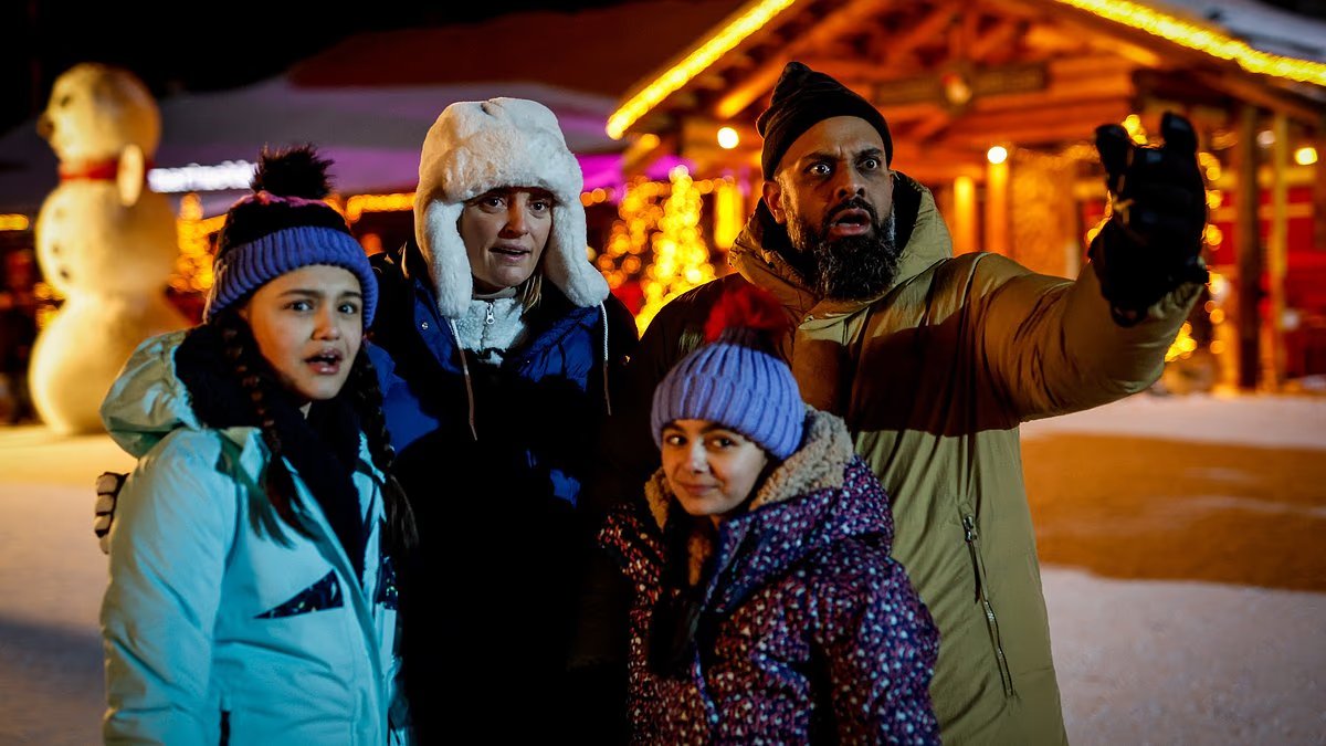 La trama muestra a la pareja y sus dos hijos viajando a Laponia para unas vacaciones especiales después de recibir un bono de Navidad de £8,000 en lugar de £800.