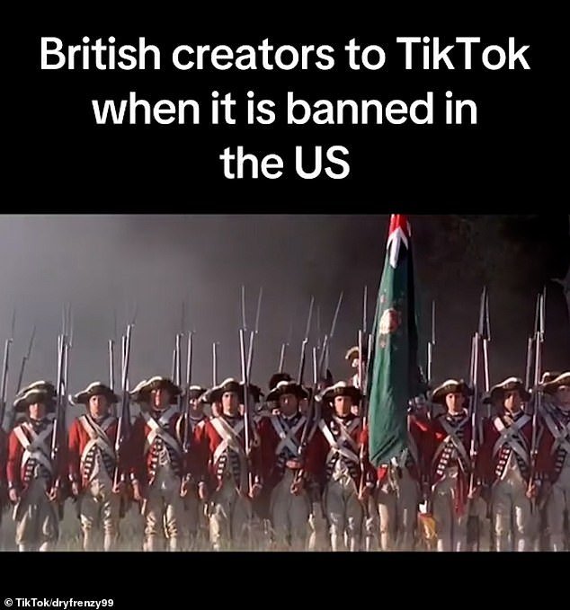 Un vídeo titulado “Creadores británicos en TikTok cuando está prohibido en Estados Unidos” muestra a soldados británicos marchando triunfalmente y ondeando la bandera de su país.