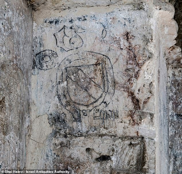 Los arqueólogos explicaron inscripciones en las paredes del ejército, lo que sugiere que fue respetado por los peregrinos cristianos en la Edad Media. Ilustra la parte superior anoche con una capa de armas tallada con la escena