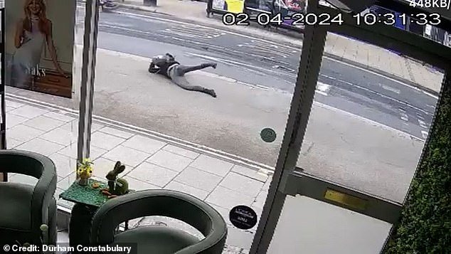 Un policía de alta velocidad fue golpeado con un ladrón de motos de drogas-jalani con ‘acción instantánea’ después de que el motor caliente fue volado durante una persecución policial de alta velocidad (ilustrado: Siran Parker cae después del accidente)