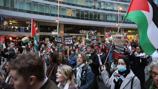 Jueves por la noche en el Manchester Center, una gente de March Palestiniana, caminaron por las calles