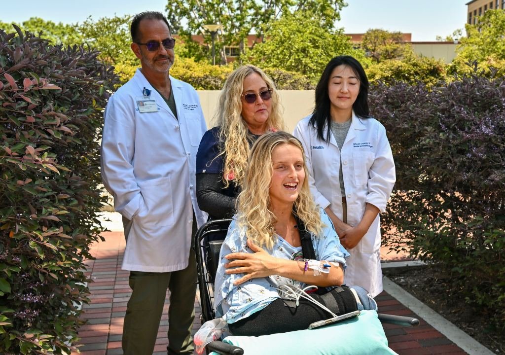 Un mes después de que un tren separó su brazo derecho, el entrenador de surf Elijah Bayard fue liberado del Centro Médico UCI de Orange en Orange, donde su brazo se volvió a conectar a una cirugía de 10 horas.