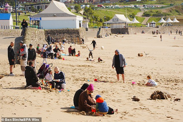 Las familias de la isla de Barry se reunieron a lo largo de la playa para jugar en arena como una experiencia de primavera anormalmente cálida.