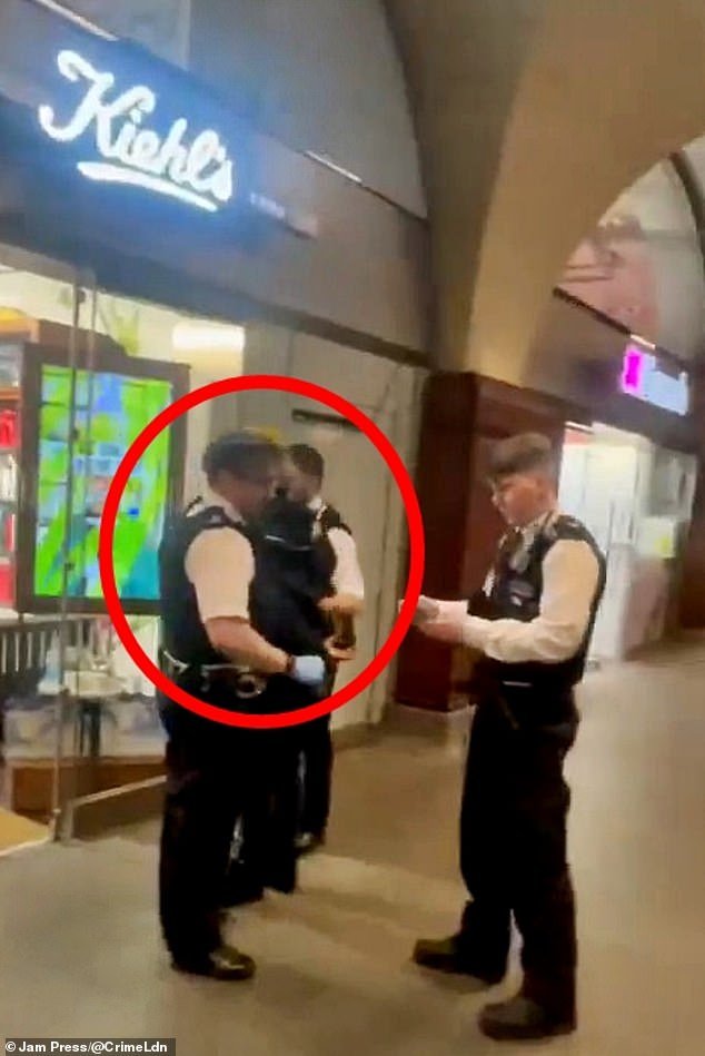 Ayer, tres oficiales de policía uniformes extendieron el área fuera de una tienda de belleza en el Puente de Londres, donde se presentó el arma frente a los compradores conmocionados.