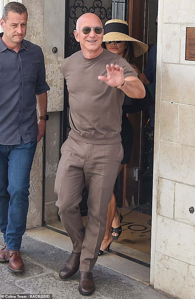Grome Jeff Bezos (1) fue a la mirada de United All-Brown a la mañana siguiente de su boda, que fue confundida por su nueva novia. La elección de decoración del magnate del multimillonario Tech se sintió más que el verano porque la novia deambuló por las calles de la mano de Venecia en su mano