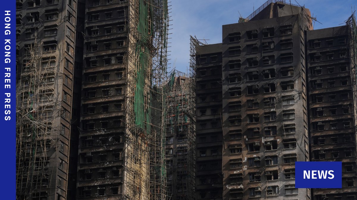 Se quemó el edificio del tribunal Wong Fook en Tai Po el 28 de noviembre de 2025 después del peor incendio en Hong Kong en décadas. Foto: Kyle Lam/HKFP.