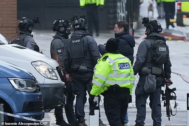 El martes por la noche fue visto a la policía armada fuera del edificio Gateway en Sheffield en South Yorkshire