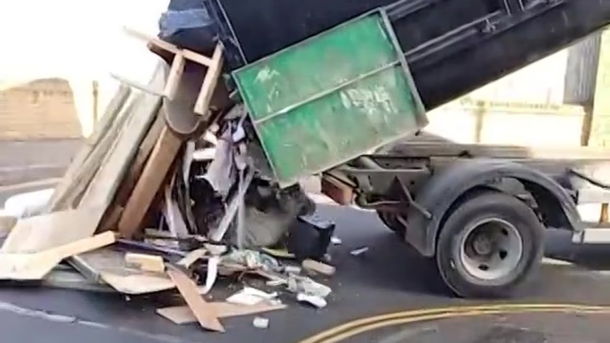 El residente local James True dijo que escuchó un ruido afuera de su casa y pensó que era la recolección de contenedores de un vecino y salió, solo para encontrar un camión tirando basura por toda la carretera y luego se alejó a toda velocidad, todavía tirando basura al costado de la carretera.