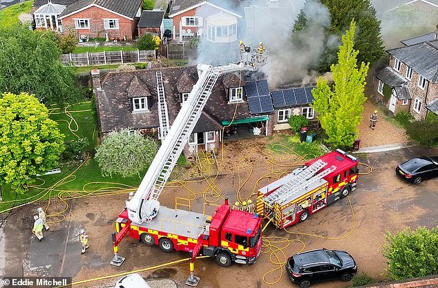 El equipo de bomberos se apresuró a la propiedad de Fitleworth cerca de Choicester en West Sussex, a las tres de la tarde antes del informe del techo.
