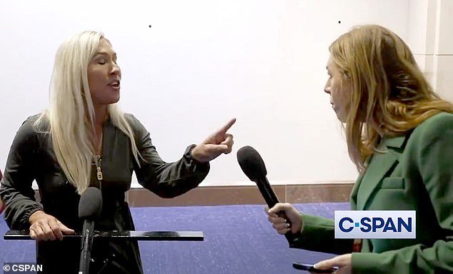 El corresponsal estadounidense de Sky News siguió a MTG y hizo repetidamente la misma pregunta.