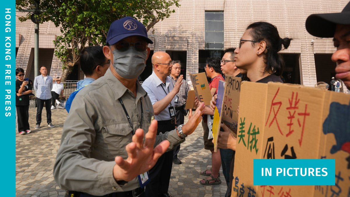 Las autoridades pidieron un alto el fuego en la guerra entre Rusia y Ucrania y pidieron a los activistas contra el combate que abandonaran el lugar el 21 de febrero de 2026. Foto: Kyle Lam/HKFP.