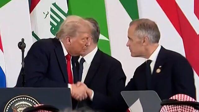 Después de la conferencia, Mark Carney le estrechó la mano a Trump y bromeó sobre Mistap diciendo “está feliz de tenerme a la altura del presidente”.