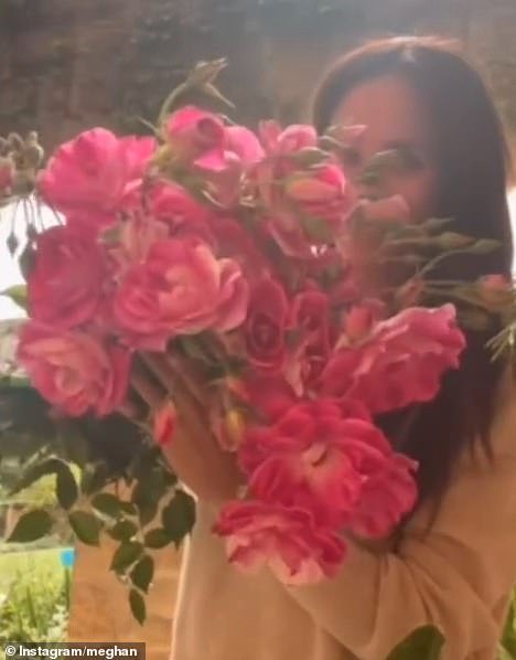 Meghan recientemente compartió el mismo tipo de videos de flores con su enorme jardín floral en la casa de sus $ 1 millón en la familia Montekito y su tardío perro de rescate.