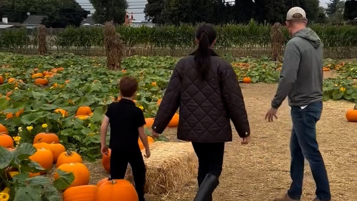 Meghan Markle ha compartido un nuevo vídeo de sus hijos corriendo por un campo mientras se maravillan de ver a su padre, el príncipe Harry, tallar calabazas.