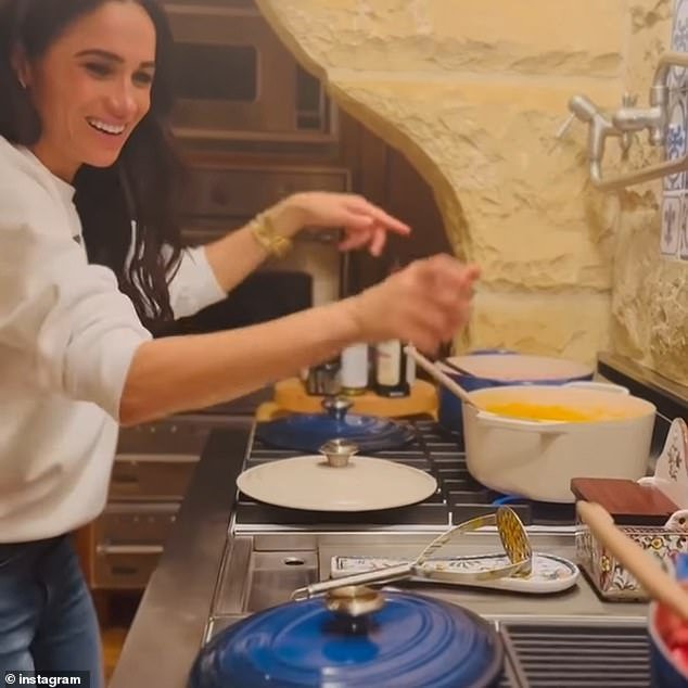 A El nuevo video ha sido publicado en su página de Instagram El martes por la tarde, Meghan compartió un video de su baile en su cocina porque parecía ser dos enormes horno holandés lleno de mermelada.