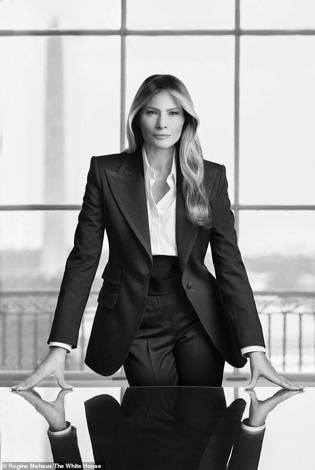 La Casa Blanca fue atrapada un día después de la inauguración de su esposo del retrato oficial (ilustrado): Melania parecía desaparecer.