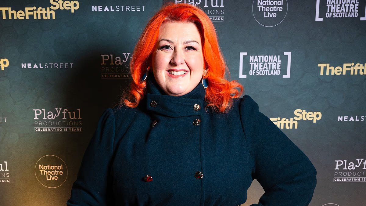 Michelle McManus hace alarde de su increíble novena pérdida de peso con un elegante abrigo azul marino en el estreno de Fifth Stage en Edimburgo