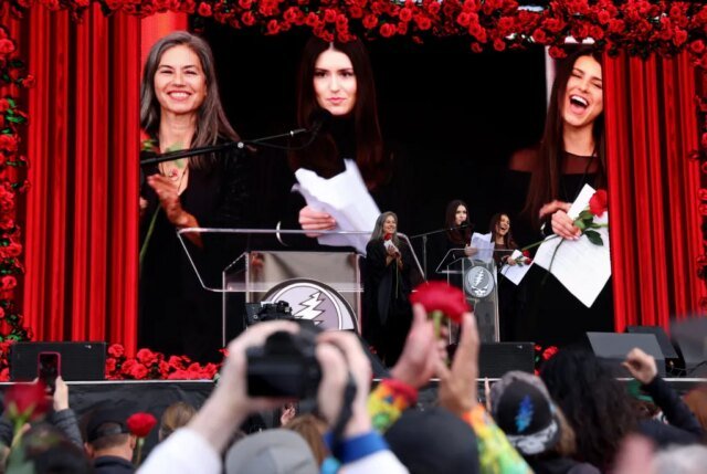 “Fue la música, el espíritu de generosidad”, dijo Greg Hanson de San Rafael, quien entregó rosas en honor a la muerte de Weir. Dijo que ha sido fanático desde 1968 y que vio por primera vez al equipo jugar en clubes pequeños en lugar de estadios. “Daron sus vidas para mejorar las vidas de sus fanáticos… Es una excelente manera de despedirlo”.