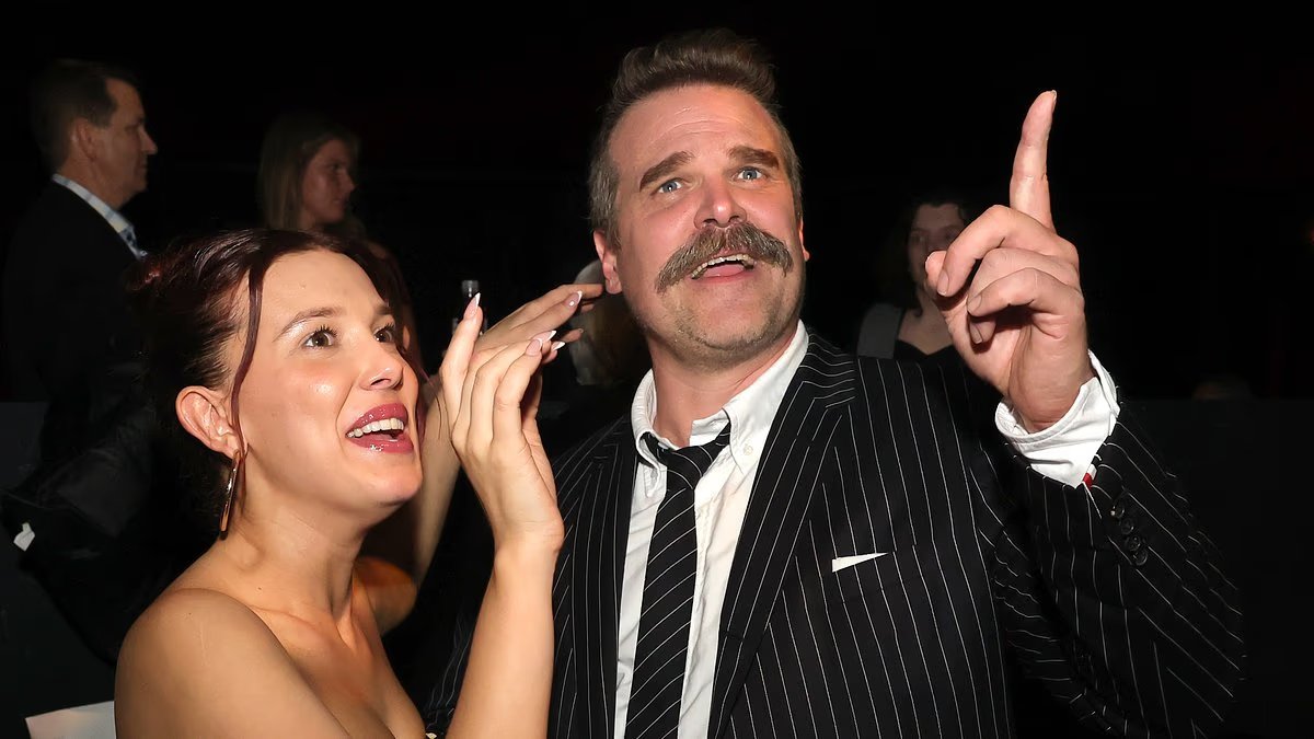 Millie Bobby Brown y David Harbour han sido acusados por un experto en lenguaje corporal de realizar un ‘doble acto de comedia OTT para las cámaras’ después de que la pareja hiciera una exhibición extraña en la fiesta de Stranger Things el jueves.