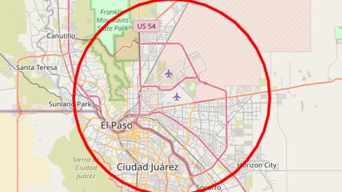 El espacio aéreo restringido es un área de 10 millas de ancho centrada a unas cinco millas al suroeste de El Paso y se extiende hasta 18,000 pies sobre el suelo.