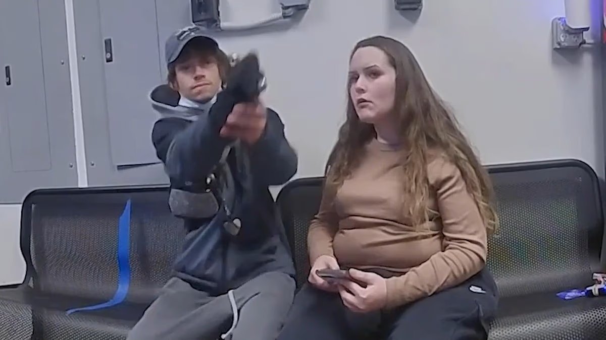 Shane Newman fue captado en imágenes de la cámara corporal supuestamente sacando un arma, que aparentemente estaba defectuosa, mientras Katarina Jeffery se sentaba a su lado el jueves.