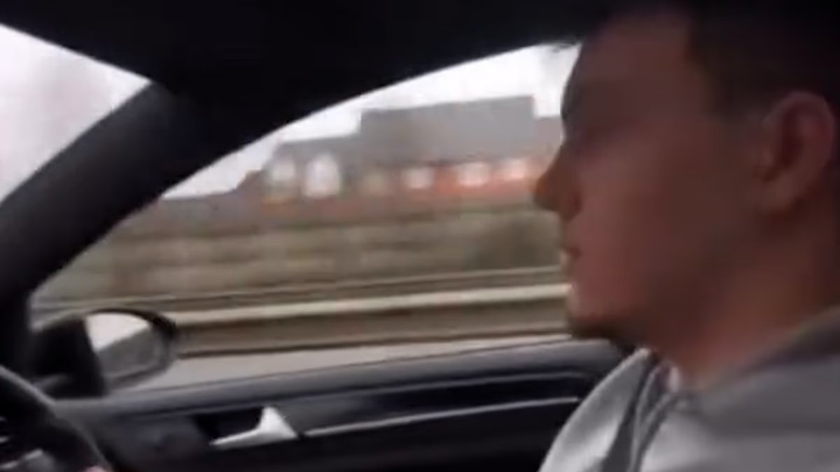 Las imágenes, publicadas en Instagram, lo capturaron conduciendo hacia el oeste en su Volkswagen Golf altamente modificado, adelantando a otros automovilistas.