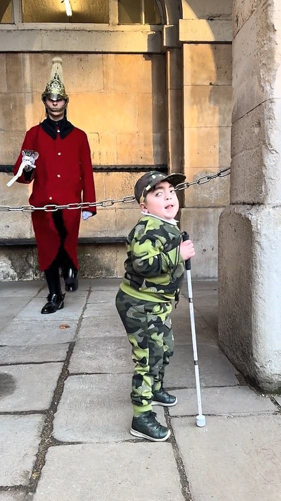 Una guardia rey ha roto el protocolo para crear un gesto de corazón que se calienta a un niño ciego de ocho años.