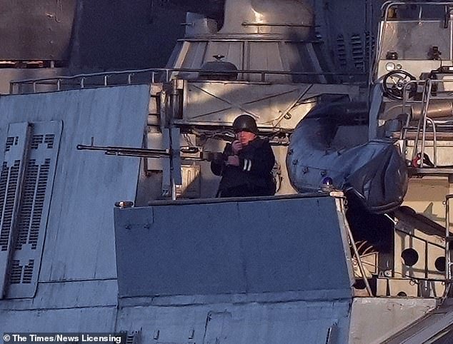 Momentos escalofriantes Marcas de oficiales de la Armada rusa Machine Gunnah en el Canal de la Mancha ‘mientras abren armas para Ucrania Frontline’