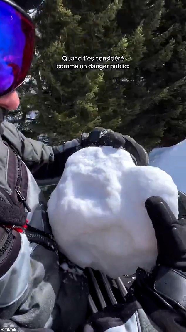 Su parisino de los 20, que no fue nombrado, fue visto presionando una gran bola de hielo desde el telesilla, golpeando la mesa de un hombre en un restaurante en Alpe d’Hez.