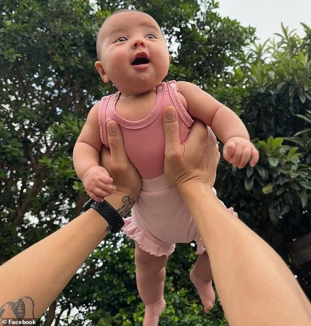 Aeen Anslet y su compañero Kim son retratados con el bebé Olivia en su primer cumpleaños
