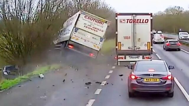 La policía de Thames Valley ha publicado el vídeo del camino hacia el conductor y los exportadores de vehículos de camino al puerto de Southampton.