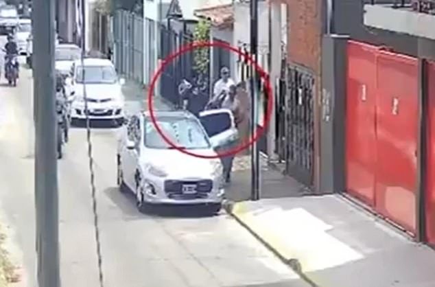 El video de vigilancia mostró a la víctima, Nicholas, de pie junto a su automóvil cuando tres sospechosos le tendieron una emboscada a plena luz del día el lunes.